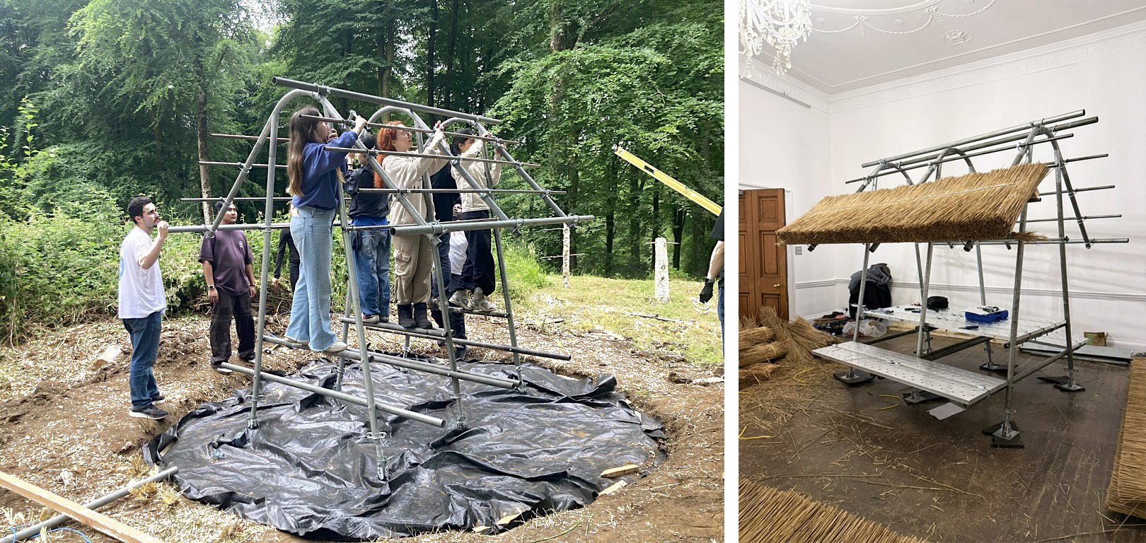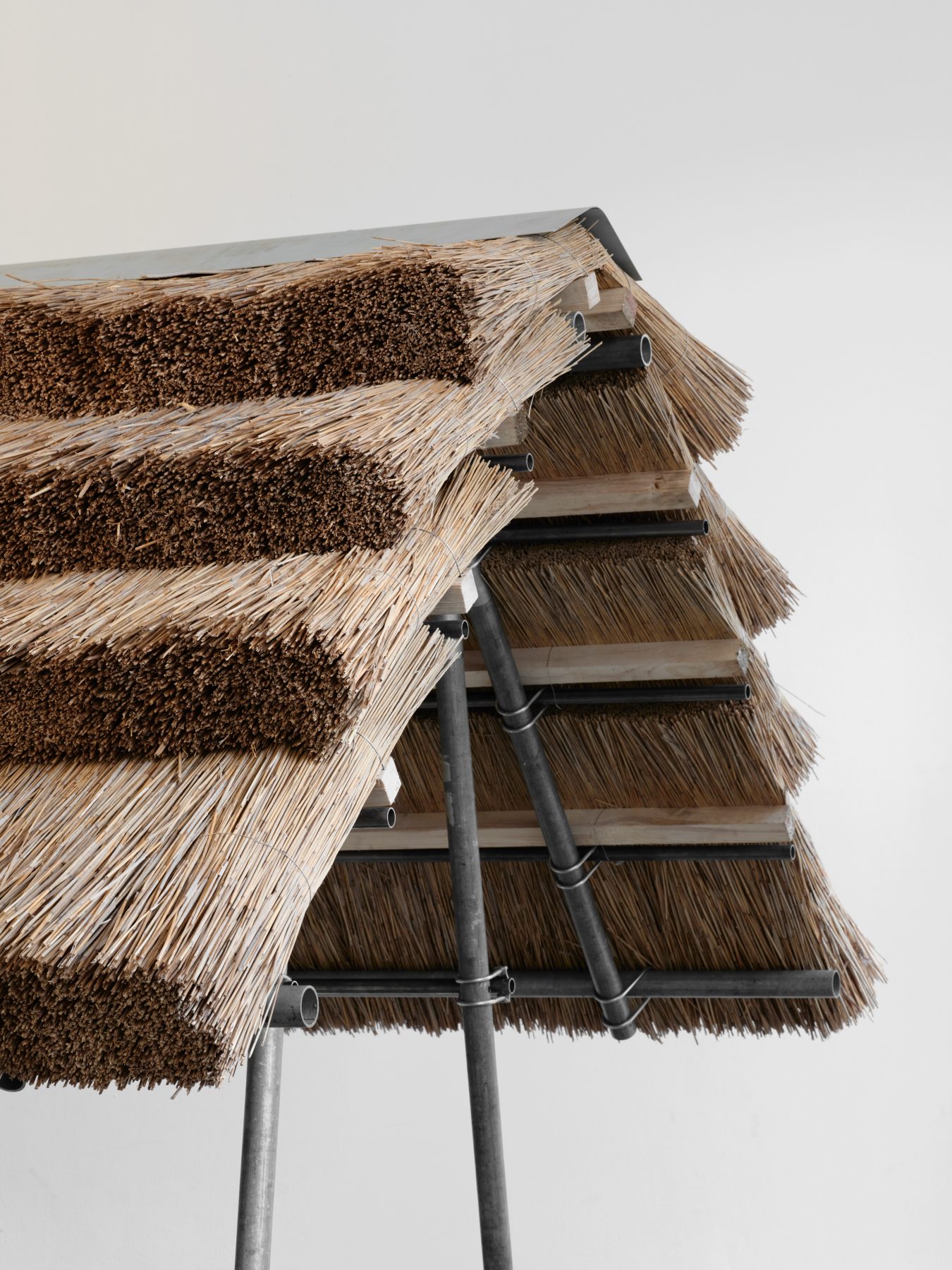 On the one hand, human-centred design in cities is crucial as an initiative to recycle resources sourced from afar and strive towards a sustainable circular society. Yet it is equally true that this alone cannot prevent global environmental crises or the increasing frequency of natural disasters. This time, having gained an opportunity to participate in an exhibition focused on collaboration between material artists and architects, we, together with Ikuya Sagara, a master thatch craftsman, undertook such environmental challenges in distant London. Britain once possessed its own Satoyama landscapes, where agriculture, forestry and livestock farming were intertwined. Yet in recent years, climate change has brought abnormal weather, with summer temperatures exceeding 40℃. Through this exhibition, the Distillation of Architecture held at the AA School, we wish to demonstrate that human-centred design and nature-centred design are not mutually exclusive; rather, they are approaches that should confront shared global challenges. We further aim to propose a new design approach that fuses both, creating a forum for discussing these universal issues.