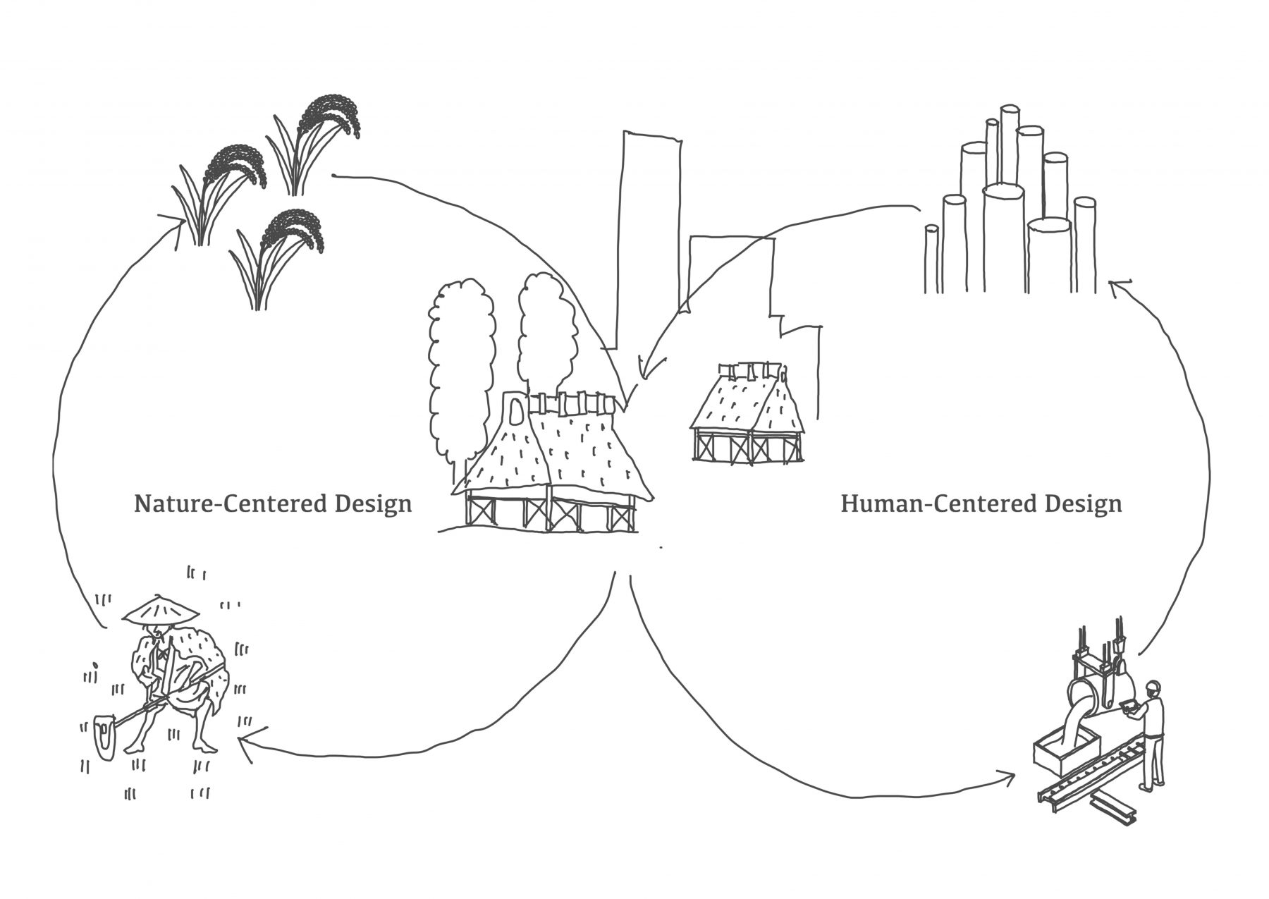 Building houses in the Satoyama area is characterised by using locally sourced timber, bamboo and earth, constructed with the cooperation of local people. Roofs are thatched with straw, creating spaces that are cool in summer and warm in winter. This lifestyle, harmonised with nature, integrates human activity as part of the natural cycle and forms beautiful landscapes. However, given current population levels and the progress of urbanisation, it is unrealistic to expect everyone to adopt this lifestyle. While many people harbour an idealised view of Satoyama, merely dreaming of its value will not solve environmental problems.